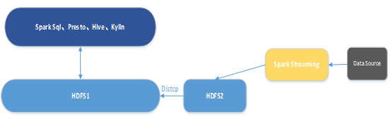 HDFS-2集群专门负责存储流计算的数据。数据收集到Kafka之后,Spark Streaming对其进行消费,计算后的数据直接写挂载了HDFS-2集群的路径。