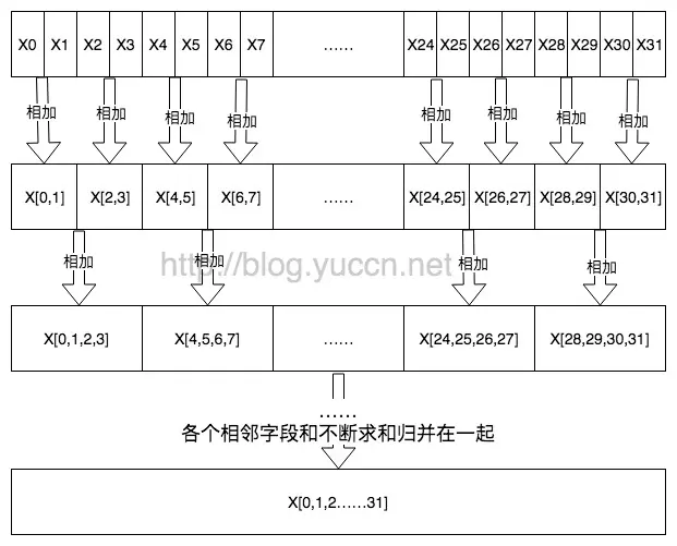 =(X0+X1)+(X2+X3)……+(X30+X31)