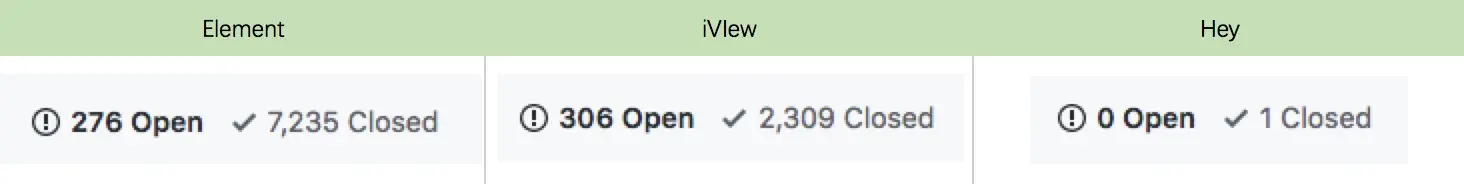 其实Element不管是star数量或者是issues的数量都是嗷嗷领先,但是这并不代表Element更具备优势,其实我自己在写vue组件库,这两个组件库我还是比较清楚的。