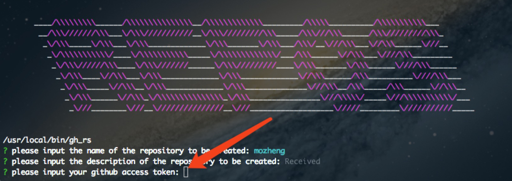 在使用过程中需要注意的一点是有很多操作是需要做身份的权限校验的,github-cli通过Oauth的access token来完成校验。所以如果你遇到需要如下这样的要求你输入token的interface