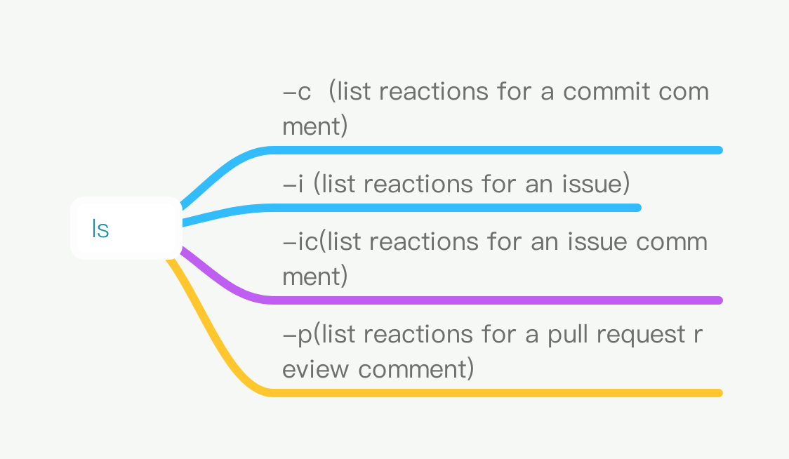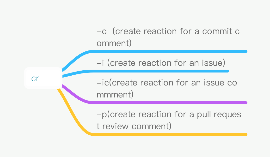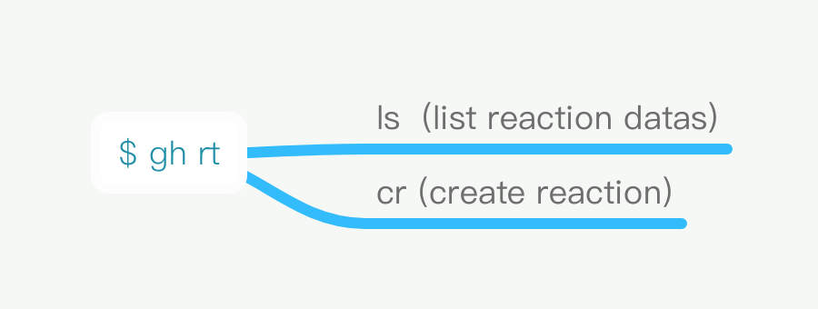 Reaction scope主要用来查看和创建一些对comment或者issue之类数据的表情回应,你可以通过如下命令查看它所支持的子命令