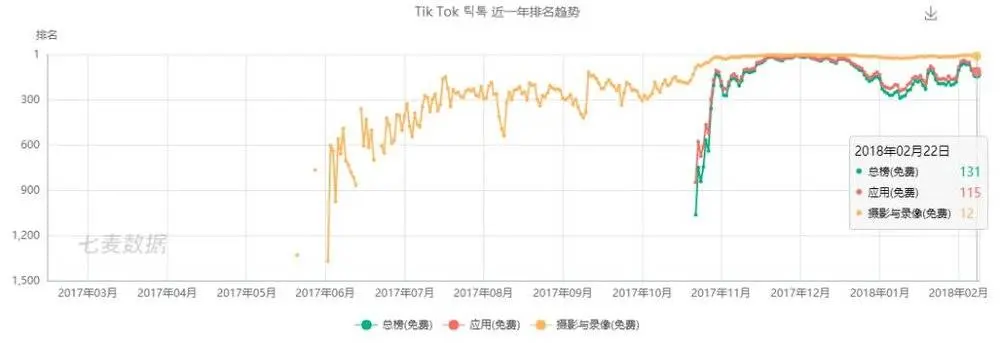 2017年12月23日,抖音更新了一个版本,这之后抖音基本就霸在了App Store前三没下来过