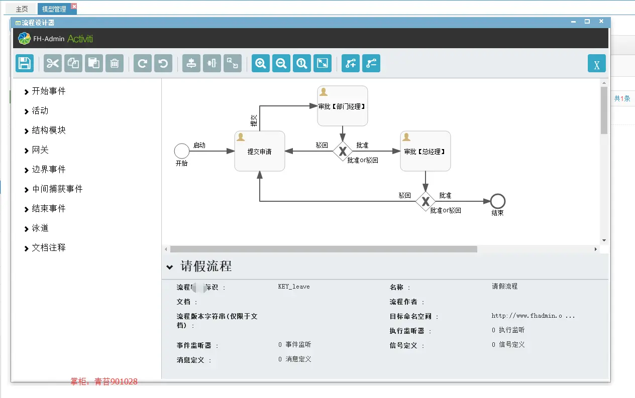 1.模型管理 :web在线流程设计器、预览流程xml、导出xml、部署流程