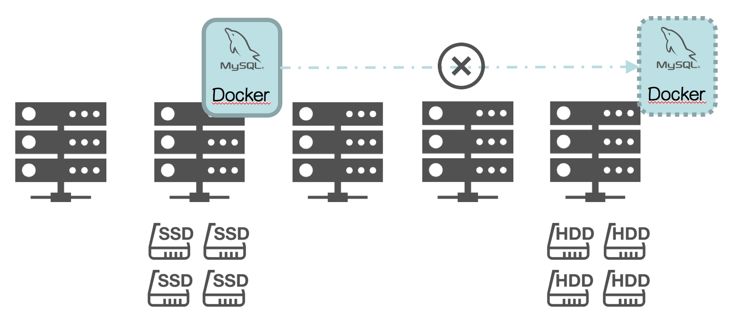 调度更复杂,选定数据库实例的存储类型(比如 SSD)后,一旦该实例发生“failover”,只能调度到拥有 SSD 的物理节点,这导致调度器需要对物理节点“Physical Topology Aware”;