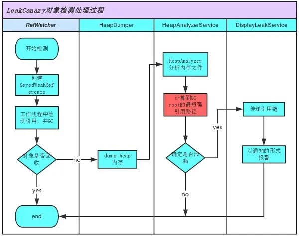 - 引用链传递到 APP 进程中的 DisplayLeakService, 并以通知的形式展示出来。