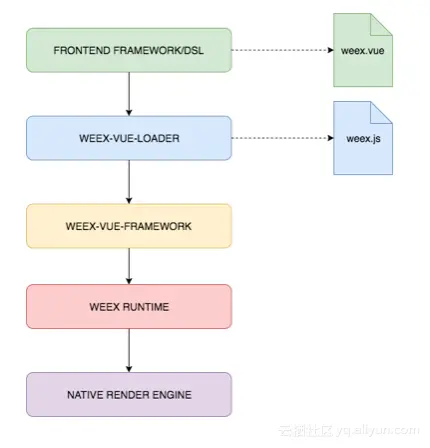 FRONTEND FRAMEWORK/DSL:这是WEEX的开发框架,目前WEEX主要是使用Vue.js进行开发