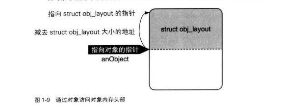 在图1-8中我们知道alloc返回的指针是指向对象的头部的,并不是指向struct obj_layout这个结构体的,所以我们想要通过对象本身的指针减去struct obj_layout结构体的大小的地址就是指向struct obj_layout的指针,如下图所示.