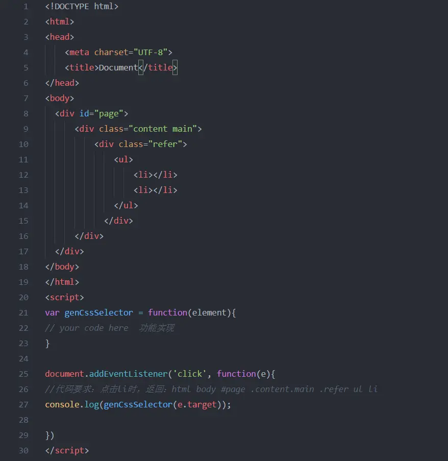 代码要求:点击li时,返回:html body #page .content.main .refer ul li
