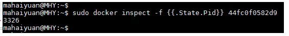 $ sudo docker inspect -f ``.`State`.`Pid` 44fc0f0582d9