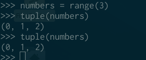 与迭代器不同的是,我们可以遍历一个 range 对象而不「消耗」它: