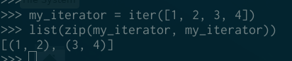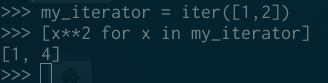 而且你会知道,当遍历它时,这些元素将从迭代器中被消耗掉,有时候这个特性可以派上用场(以特殊的方式处理迭代器):