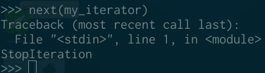 如果没有更多的元素了, 则会抛出一个 stop iteration exception: