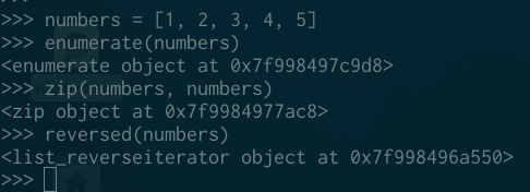 在 Python 3 中,enumerate、zip、reversed和其他一些内置函数会返回迭代器: