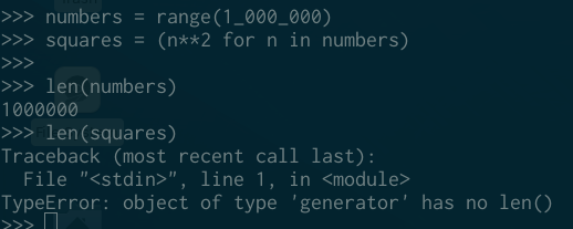 如果你知道你正在循环遍历的对象是在循环的时候计算出来,那么这是一个惰性可迭代对象(lazy iterable)。
