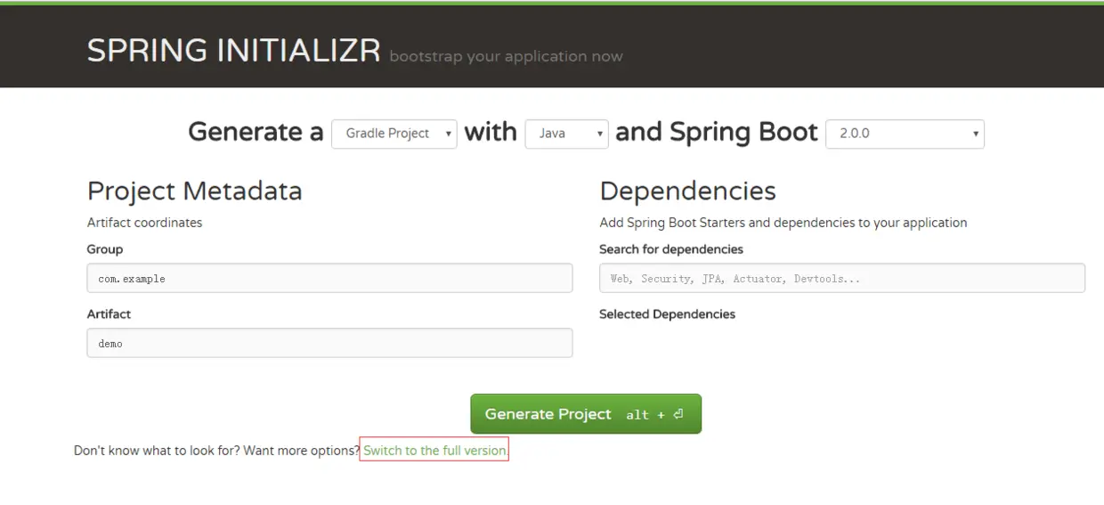 - 创建工程从开源网站start.spring.io/生成