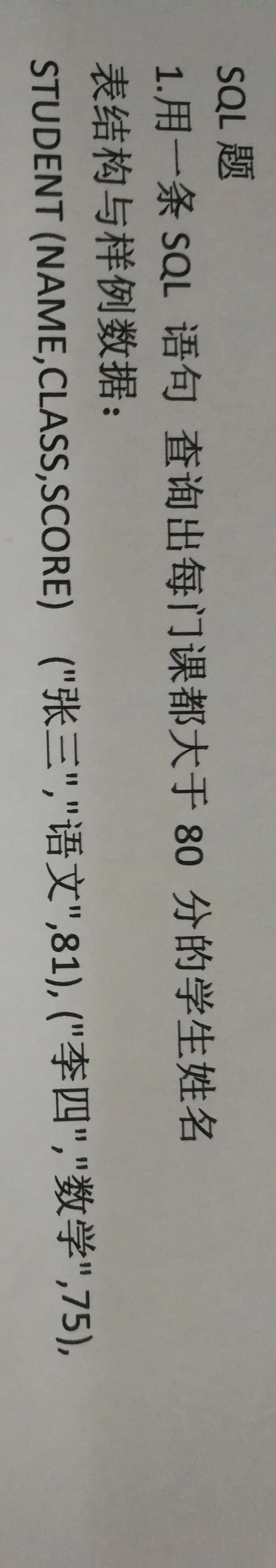 select t.name from student t group by t.name having count(t.score) = sum(case when t.score > 80 then 1 else 0 end)