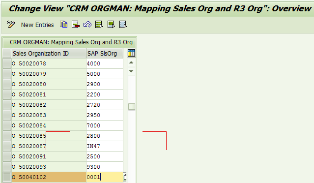 例如,ERP的编号为0001的销售组织映射到CRM的编号为O 50040102的销售组织: