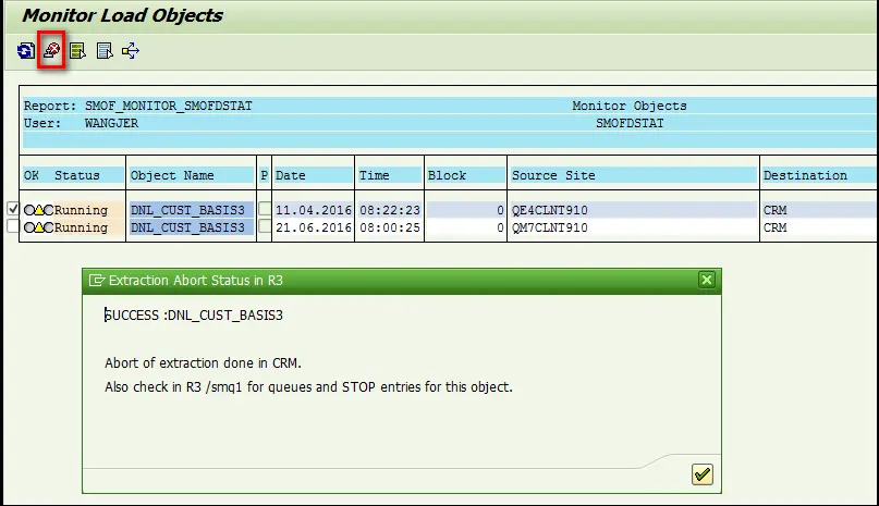 然而有时遇到的是黄色的警告消息:Object is in status Wait.