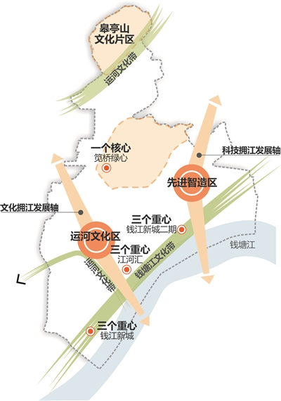 发展定位:杭州市的政治、经济、文化新中心和钱塘江金融港湾核心区