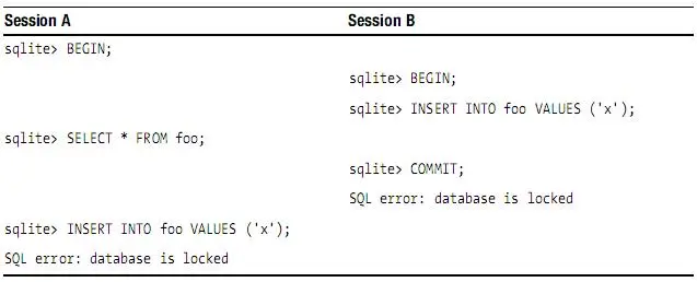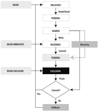 Exclusive事务会试着获取对数据库的EXCLUSIVE锁。这与IMMEDIATE类似,但是一旦成功,EXCLUSIVE事务保证没有其它的连接,所以就可对数据库进行读写操作了。 上面那个例子的问题在于两个连接最终都想写数据库,但是他们都没有放弃各自原来的锁,最终,shared 锁导致了问题的出现。如果两个连接都以BEGIN IMMEDIATE开始事务,那么死锁就不会发生。在这种情况下,在同一时刻只能有一个连接进入BEGIN IMMEDIATE,其它的连接就得等待。BEGIN IMMEDIATE和BEGIN EXCLUSIVE通常被写事务使用。就像同步机制一样,它防止了死锁的产生。 基本的准则是:如果你在使用的数据库没有其它的连接,用BEGIN就足够了。但是,如果你使用的数据库在其它的连接也要对数据库进行写操作,就得使用BEGIN IMMEDIATE或BEGIN EXCLUSIVE开始你的事务