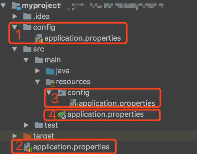 以上对application.properties文件的使用都是基于在classpath根路径下,即将application.properties文件放在resources目录下。Spring Boot支持从以下位置加载application.properties文件: