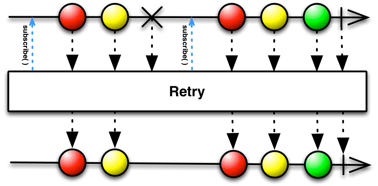 .retry(2) // 最多可以尝试重新订阅 2 次