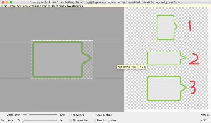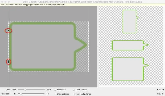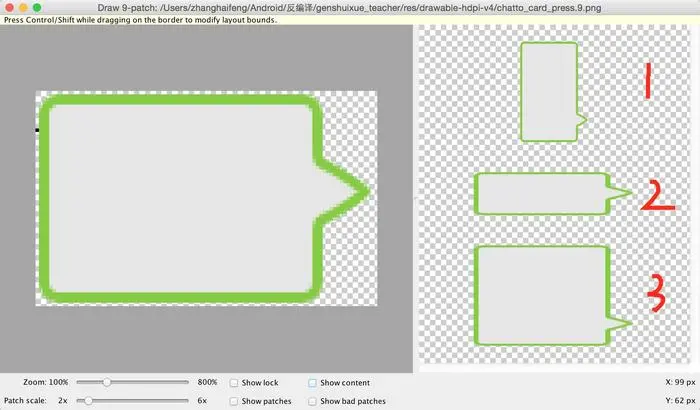 .9的制作,实际上就是在原图片上添加1px的边界,然后按照我们的需求,把对应的位置设置成黑色线,系统就会根据我们的实际需求进行拉伸。