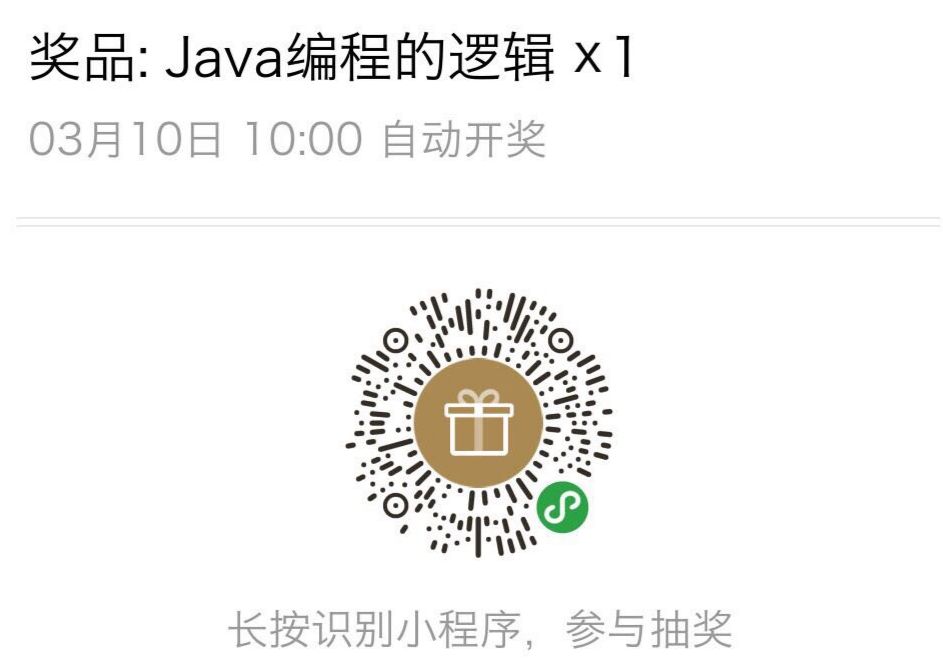 福利好了,到了福利时间。送书,价值99元的《Java编程的逻辑》,书籍介绍及获取方式如下: