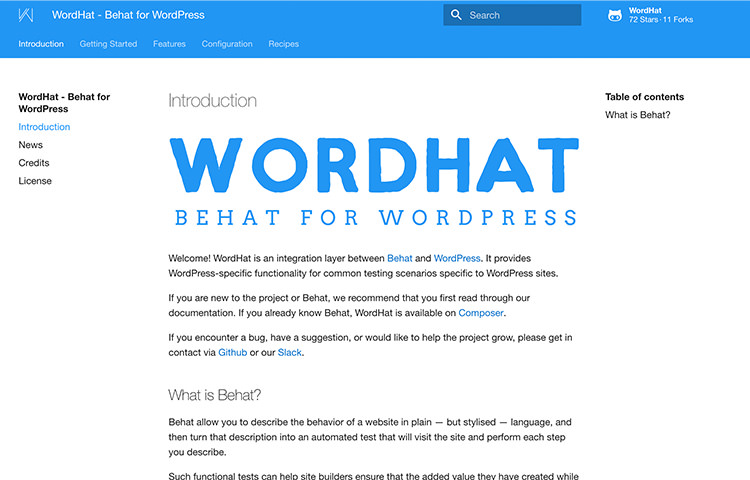 WordHat 是一个将 BeHat 整合到 WordPress 的工具。Behat 是一个用于 PHP 的开源行为驱动开发框架(BDD),让你能够通过更具有表现力的方式来测试你的PHP 应用程序。你会发现这个工具非常有用,因为你的Wordpress 主题和插件会因此拥有更加复杂的功能。