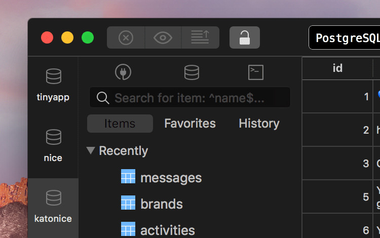 这是一个有着非常漂亮的GUI的数据库管理应用。TablePlus 支持多种数据库引擎,包括 MySQL、SQLite、Redis、Postgres、MS SQL 等等。TablePlus 还有 Windows 和 macOS的版本。