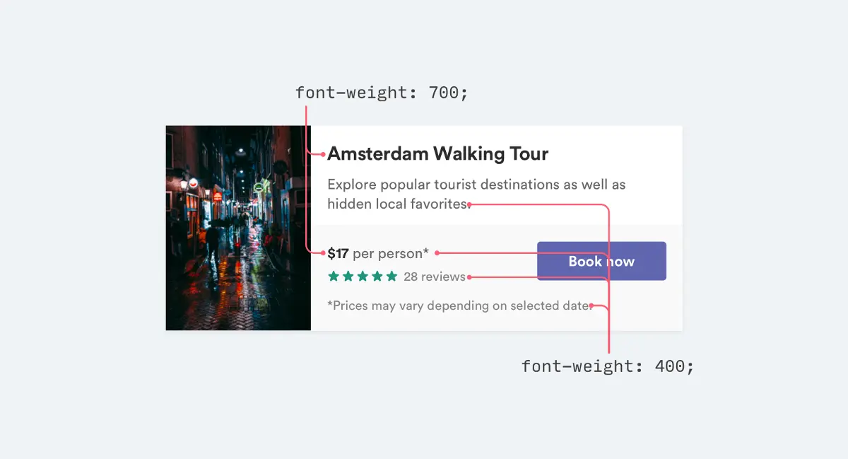 - 更粗号的字体(600 或 700)用于您要强调的文字