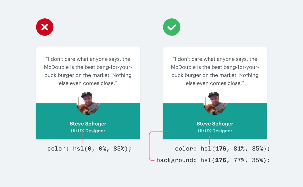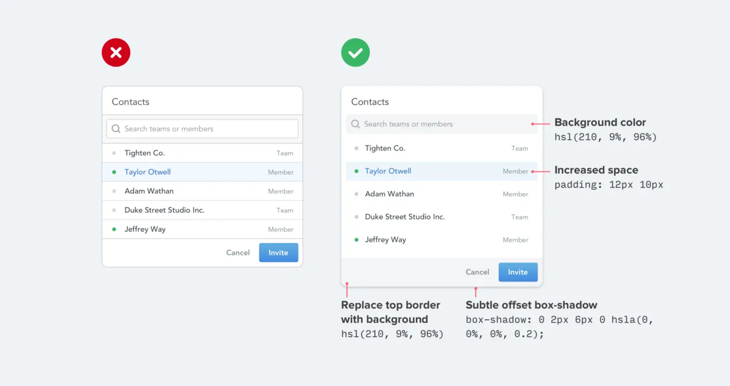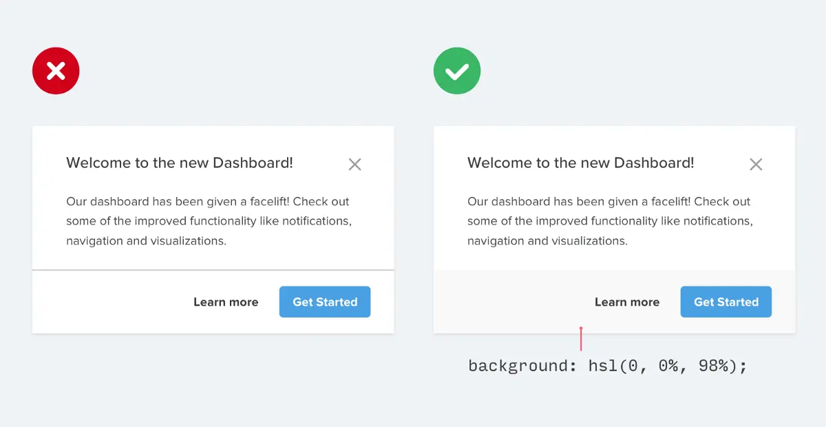 正确的方式应该是找寻接近背景色的文本颜色,这样才有助于创建层次结构。