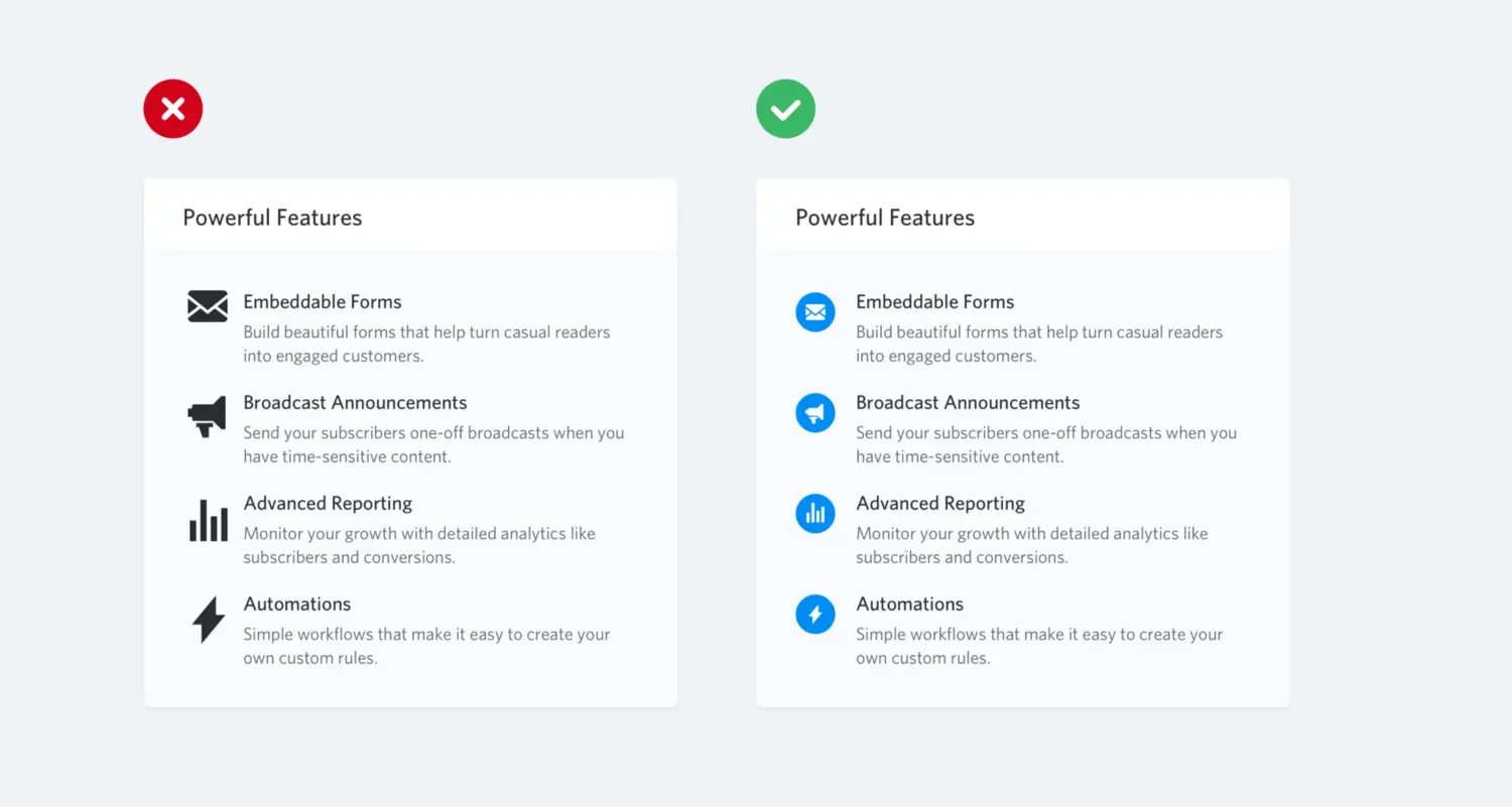 如果你正在使用像 Font Awesome 或者 Zondicons 这样的免费图标集,而且你设计的东西需要使用大图标,比如 landing page 的功能部分,那就需要注意了。