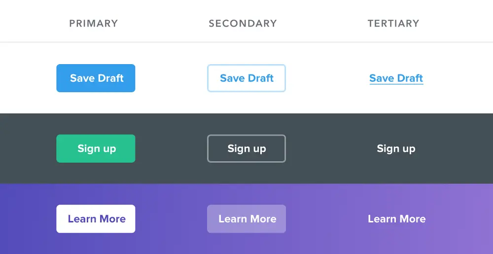 - 主要动作应该最明显。可以使用实心,高对比度的背景色。