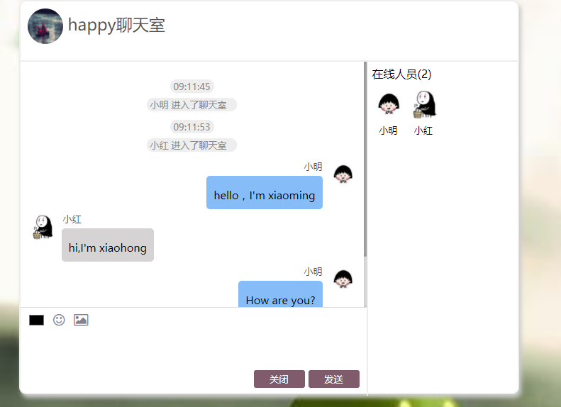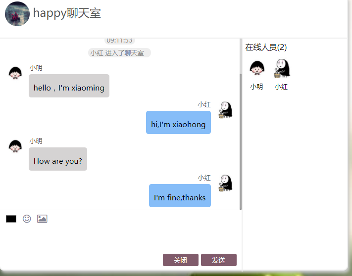 服务端监听到sendMsg事件,触发客户端的receiveMsg事件,当前客户端消息显示在右侧,其他客户端显示在左侧