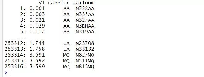 [1] "N332AA" "N813MQ" "N3742C" "N926EV" "N607SW"