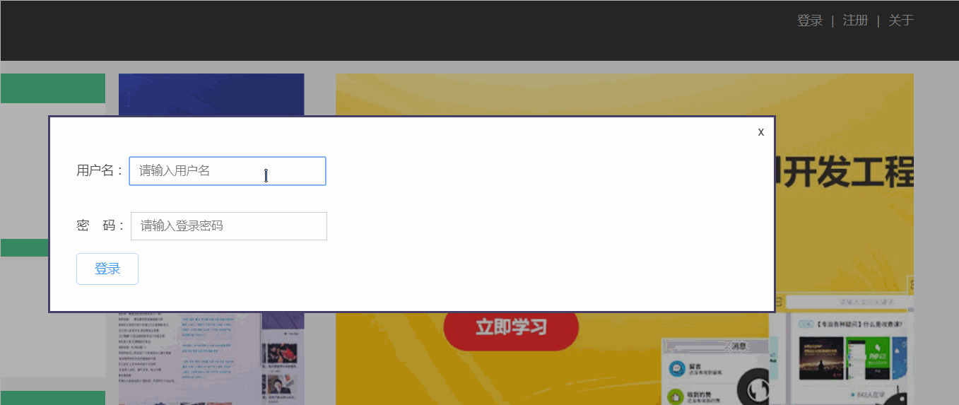 登录功能一般都是使用一个弹窗组件来实现,先让我们看看效果图: