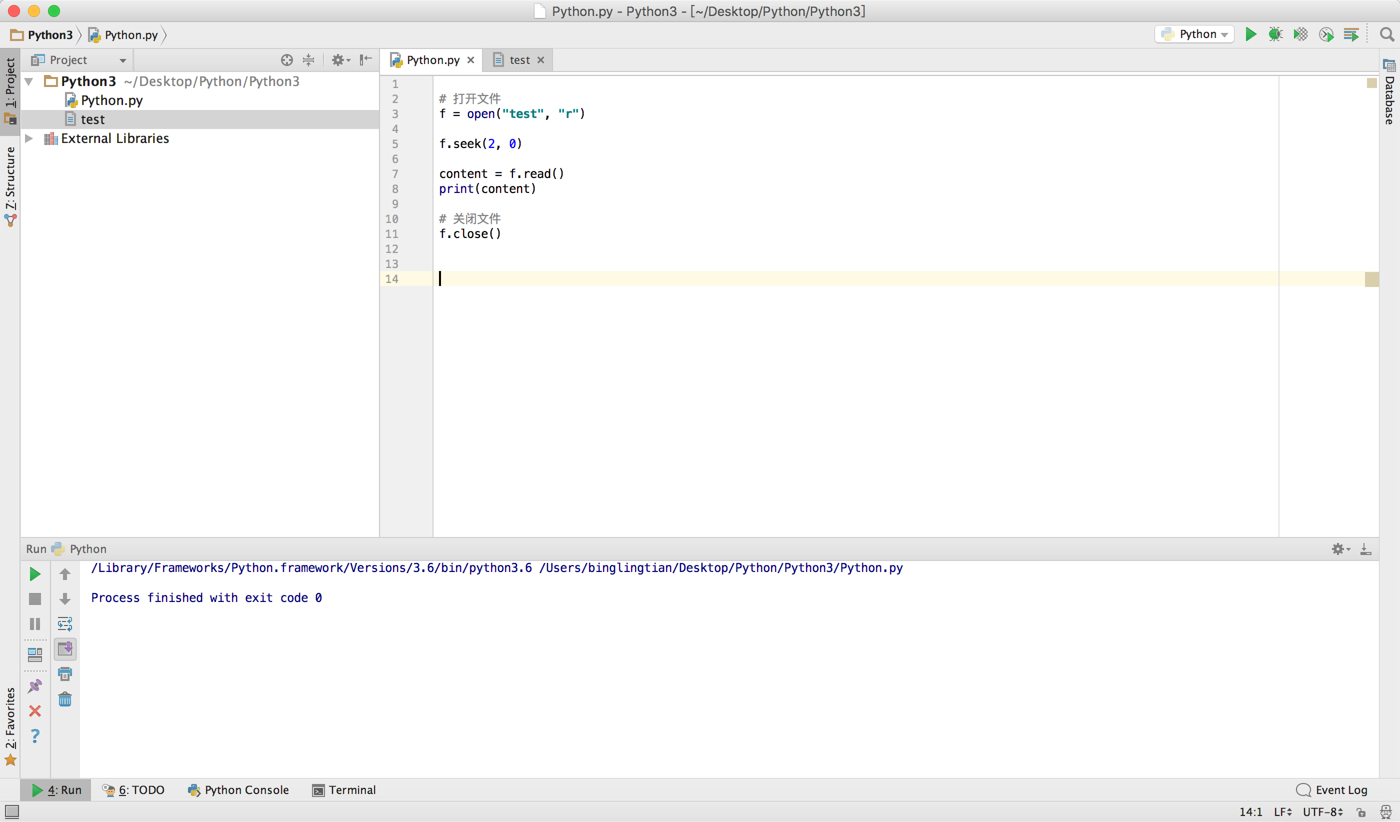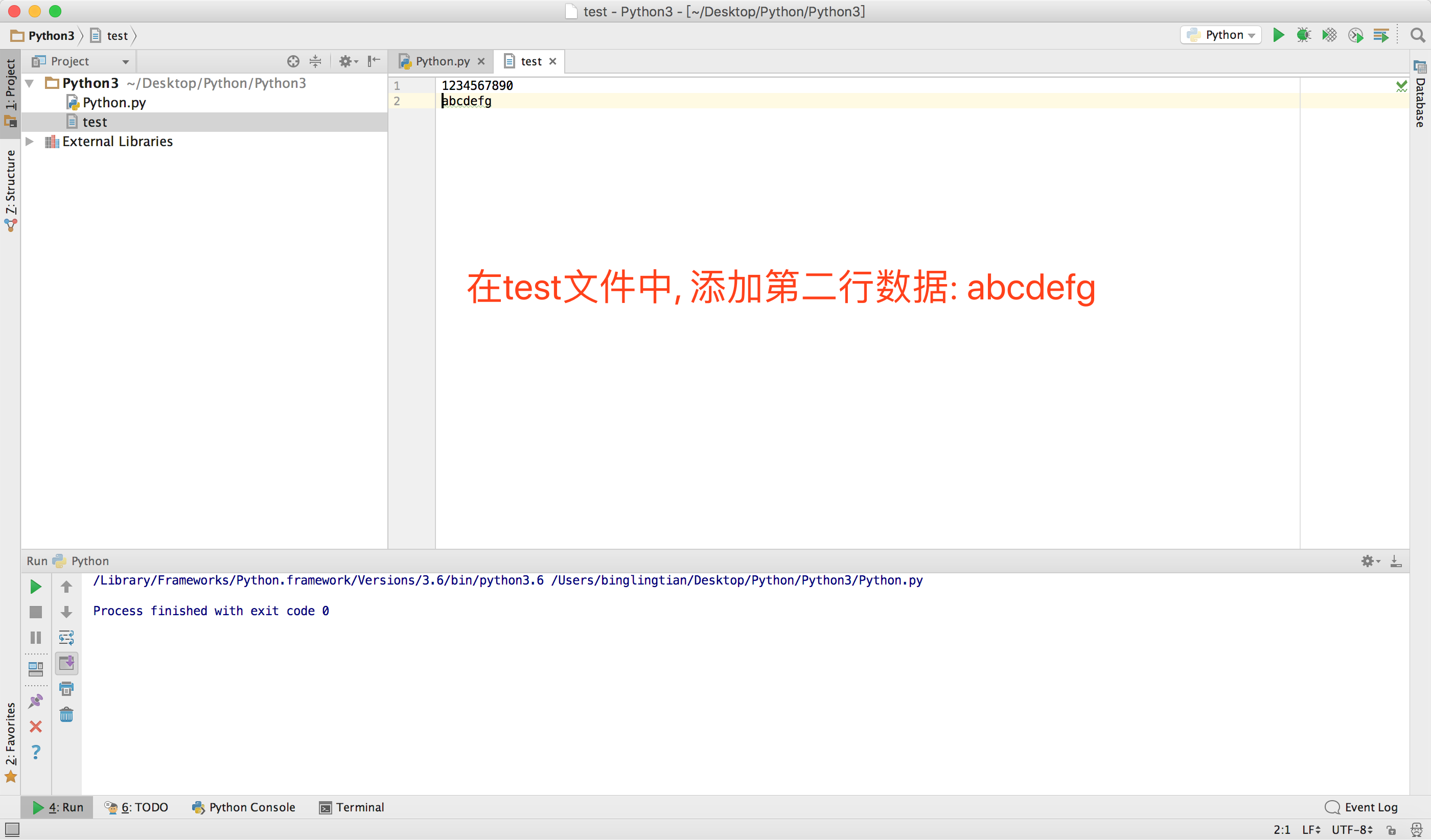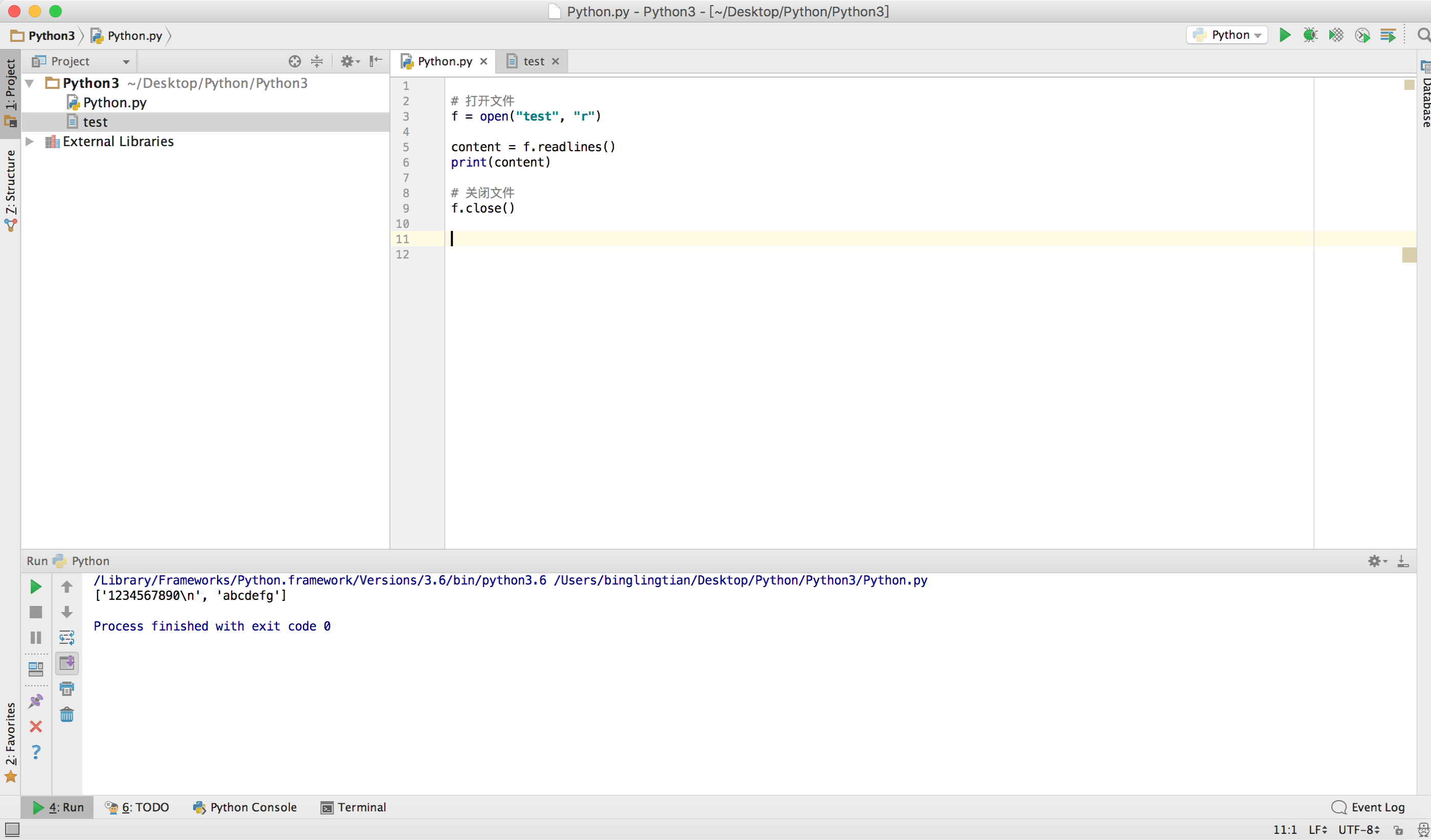 read(字节数): 字节数量默认为文件内容字节长度, 下面是在不传入字节数的情况下, 读取了test中的全部数据
