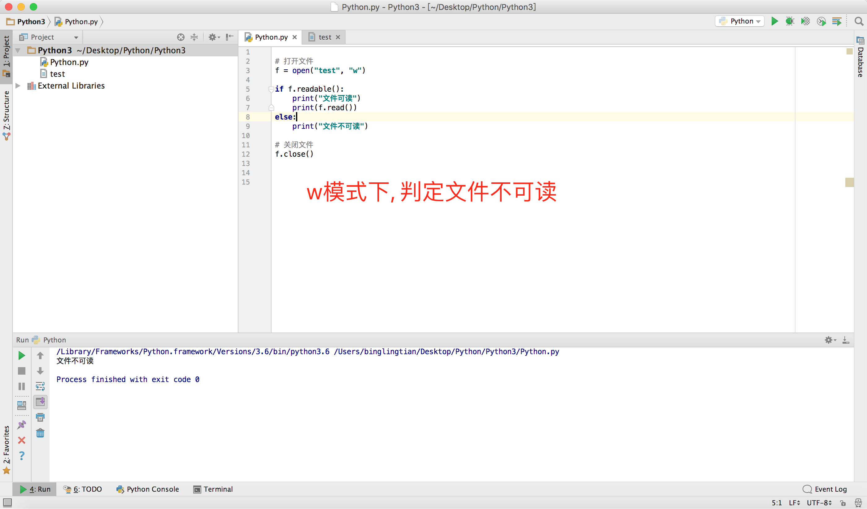 readable()判定w模式下, 文件是否可读, 结果: 文件不可读