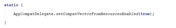 第三:在咱们的Activity中调用这句话: static { AppCompatDelegate.setCompatVectorFromResourcesEnabled(true); }