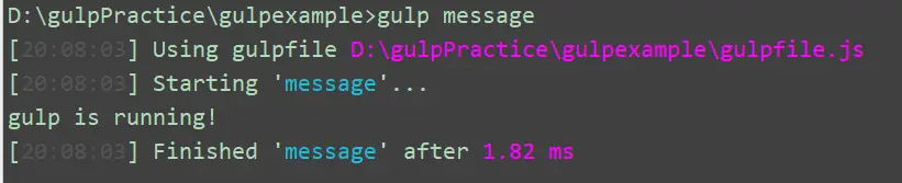 - 然后再当前文件夹目录下的命令行中执行 gulp message