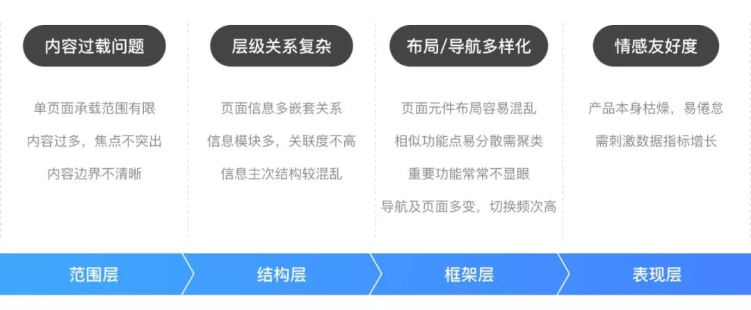 我们可以全局审视整个产品,将需要解决的问题按用户体验要素进行拆解和归类。