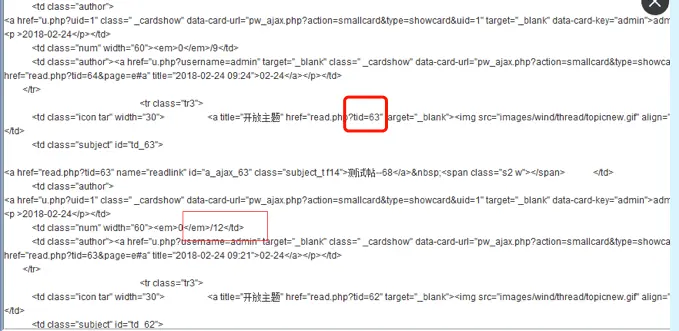 需求:要从下面这个抓到的html文本中获取浏览数(包含<em>/12<td>)为9的发帖的用户id(tid)是多少?