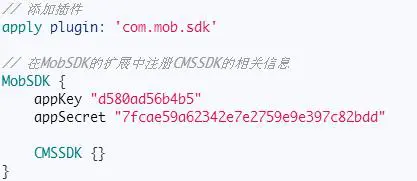 2、在使用CMSSDK模块的build.gradle中,添加MobSDK插件和扩展,如: