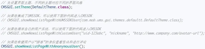 CMSSDK提供两套API:有界面API和无界面API,其中有界面API有如下3个入口,都在CMSGUI类中: