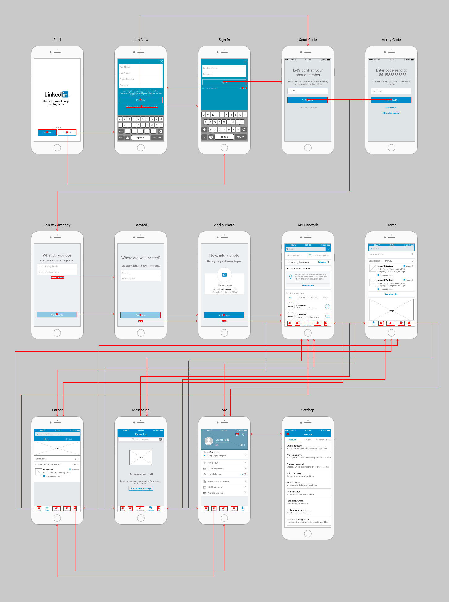 LinkedIn是全球最大的职业社交平台,通过LinkedIn可以连接机会并挖掘你的专业潜力。该应用程序可以更轻松地发现、连接和培养与重要人物的关系,搜索和申请工作,并获得有关主题和公司的最新信息。这类社交App,最重要的就是前期个人信息的填写,因此在原型中,做了大量个人信息填写相关的页面,这其中的流程和逻辑是值得学习的。