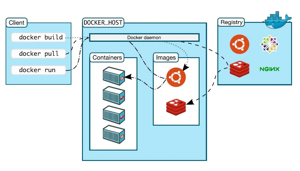 - Docker 客户端连接到 Docker 后台进程