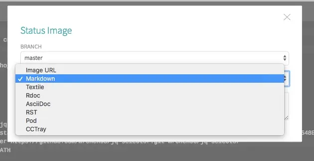 在刚才的 travis 网站你构建的项目下,点击名字边上的icon,会出现一个选择框。