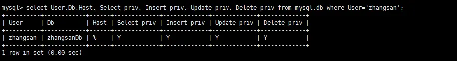 上面的语句将zhangsanDb数据库的所有操作权限都授权给了用户zhangsan。