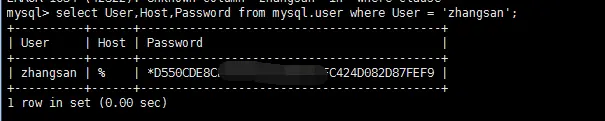 上面的命令创建了用户zhangsan,密码是zhangsan。在mysql.user表里可以查看到新增用户的信息: